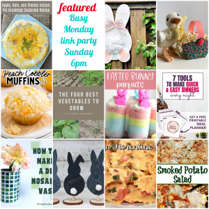 Early Easter celebration today at Bee's house. Beautiful weather. All ages gathering for the annual egg hunt and bountiful potluck. Can't wait! May you have something fun on your agenda! Thanks for stopping by to share your awesomeness this week!! Featured from last week: Ann's Entitled Life -Apple Ham and Cheese Breakfast Casserole Creatively Beth- Spring Bunny Tail Embroidery Hoop Paper Seedlings -- Paper Easter Baskets Space Ships and Laser Beams - Peach Cobbler Muffins Little Frugal Homestead - The Four Best Vegetables to Grow Hunny I'm Home - Easter Bunny Parfait Organized Motherhood - 7 Tools to Simplify Meal Prep Artsy Karma - How to Make a Mosaic Vase Pillar Box Blue - Denim Bunny Of the Hearth - Chicken Florentine Skillet That Guy Who Grills - Smoked Potato ... [Read More]